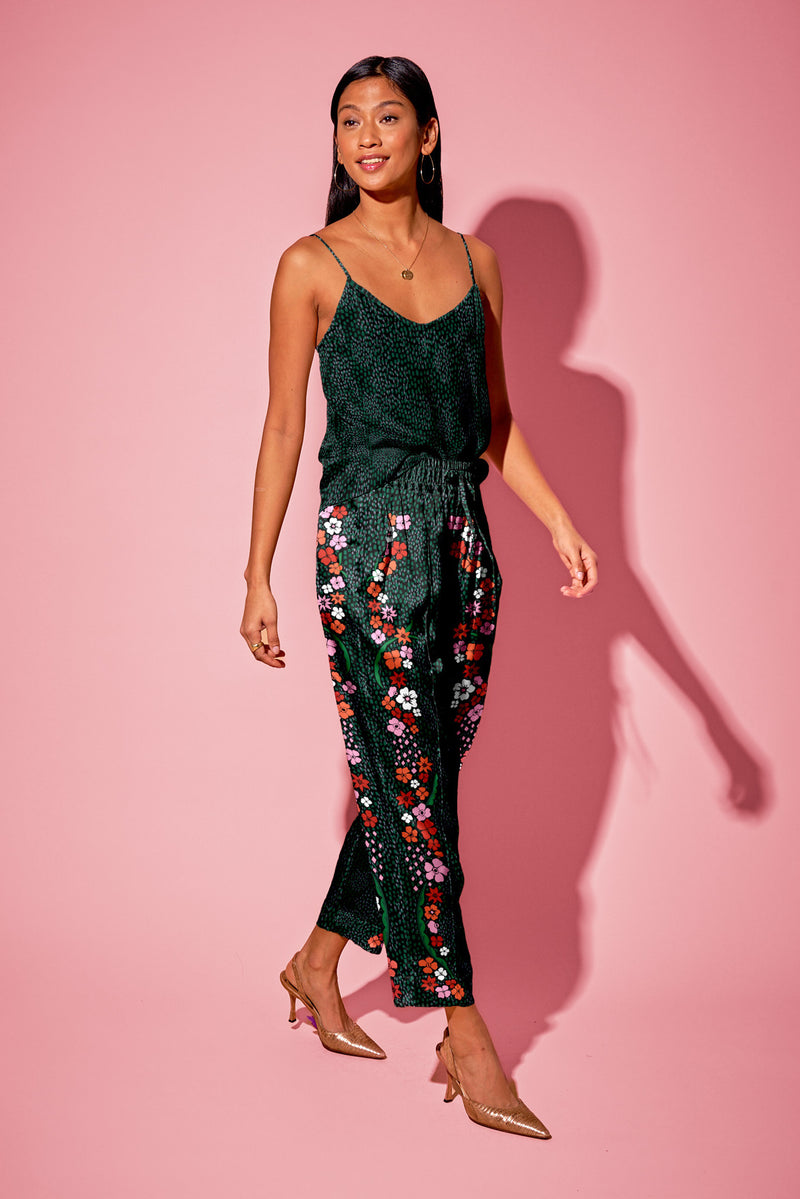 Our camisole falls over the body like a second skin and features a curved finish at the back. Adjustable straps give you the perfect fit, whether you prefer it lower cut as a going out piece or more serious layered under a sweater or blazer. Pair it tucked or untucked with our Julia Pant for a full silk look! We've lengthened the Khala Cami by 1.5" and given it a rounded hem in the front and back.
