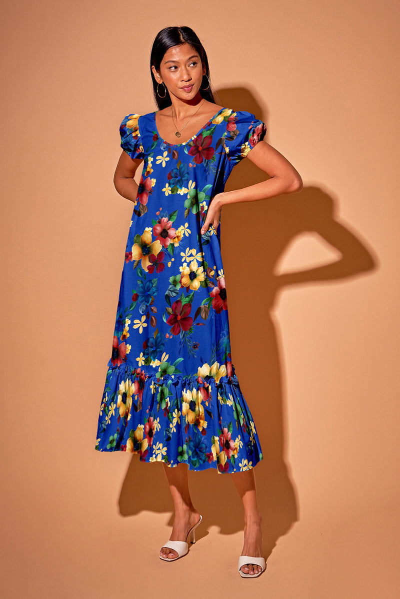 Rowan Ruffle Dress in Organic Cotton | Martinique's Marigold in Blue