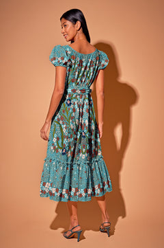 Rowan Ruffle Dress in Organic Cotton | Baroque Floral in Teal