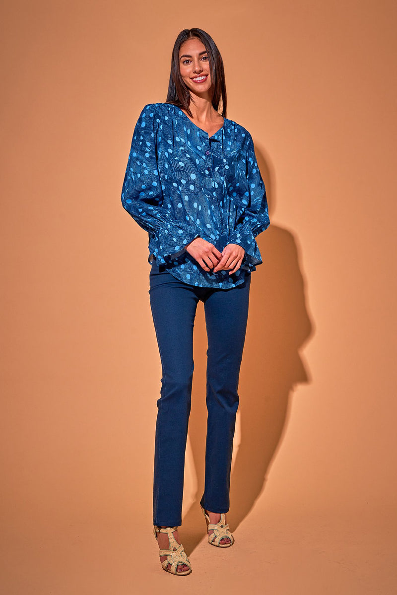 Worn here with the Juliette Blouse in Yayoi's Breezy Dots in Cornflower